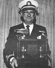 Hank Menke, Commander of Flotilla 92, holds the Harold Ivers Perpetual Trophy. The award is given for the "most assists at sea" for a flotilla in the 11th Coast Guard District. Menke accepted the award for the local flotilla at the 14th Annual Coast Guard Auxiliary District and Commodore's Ball recently at the Bahia Motor Hotel in San Diego, California.