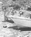 | Two members of U.S. Coast Guard Auxiliary, Dean Rowe and Dave Seibert, secure their boats for a brief rest in a rocky cove. |