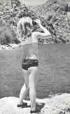 | Young mermaid checks the boating action on the lake with binoculars. Chances are she will spot some sort of unsafe practice. |