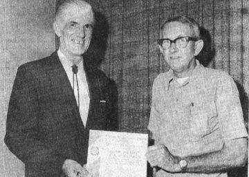 Lake Havasu City Herald 24JAN74 Past Commander Bob DeQuin, left presented the Herald with a certificate of appreciation "for outstanding contributions in furthering the purpose and principles of the Coast Guard Auxiliary". Receiving the certificate is Managing Editor, Jack Hardie.