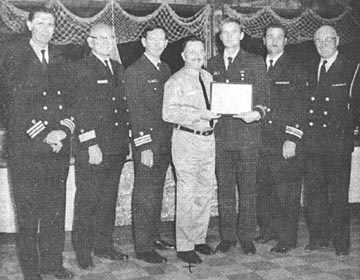 NOTES Notice in the above description of the air/sea show that messages from the aircraft about the location of distressed vessels had to be dropped to the Auxiliary vessels in bottles. This was necessitated by the short-sighted FCC rule that boats could not communicate on the same frequencies as aircraft. If a pilot had particularly good aim, he could drop the bottle right on the coxswain's noggin. As a side note, the smoke bomb (in a pail aboard the "distressed" vessel spewed out hundreds of burning embers that burned tiny holes in the boat's upholstery. |