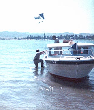 Division IX Archives "Cactus" McHarg at the helm of the Mary M . Cactus averages 70 patrols a year on Lake Mead